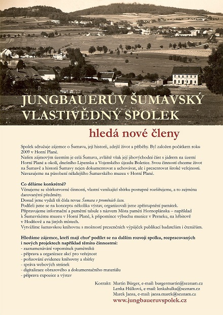Jungbauerův šumavský vlastivědný spolek hledá nové členy.